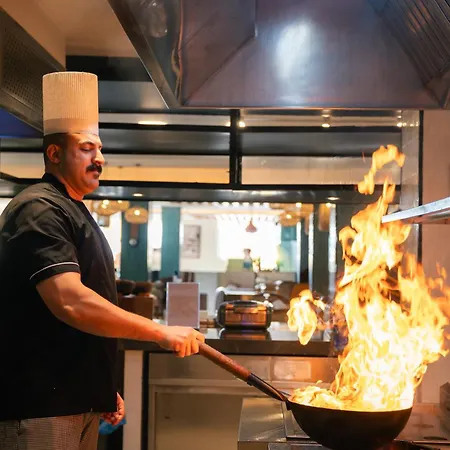 The hotel offers a buffet breakfast served every day in the restaurant. Guests can visit LAbydos restaurant for breakfast or eat dinner at LEmporio restaurant. There is a restaurant serving international dishes on site.